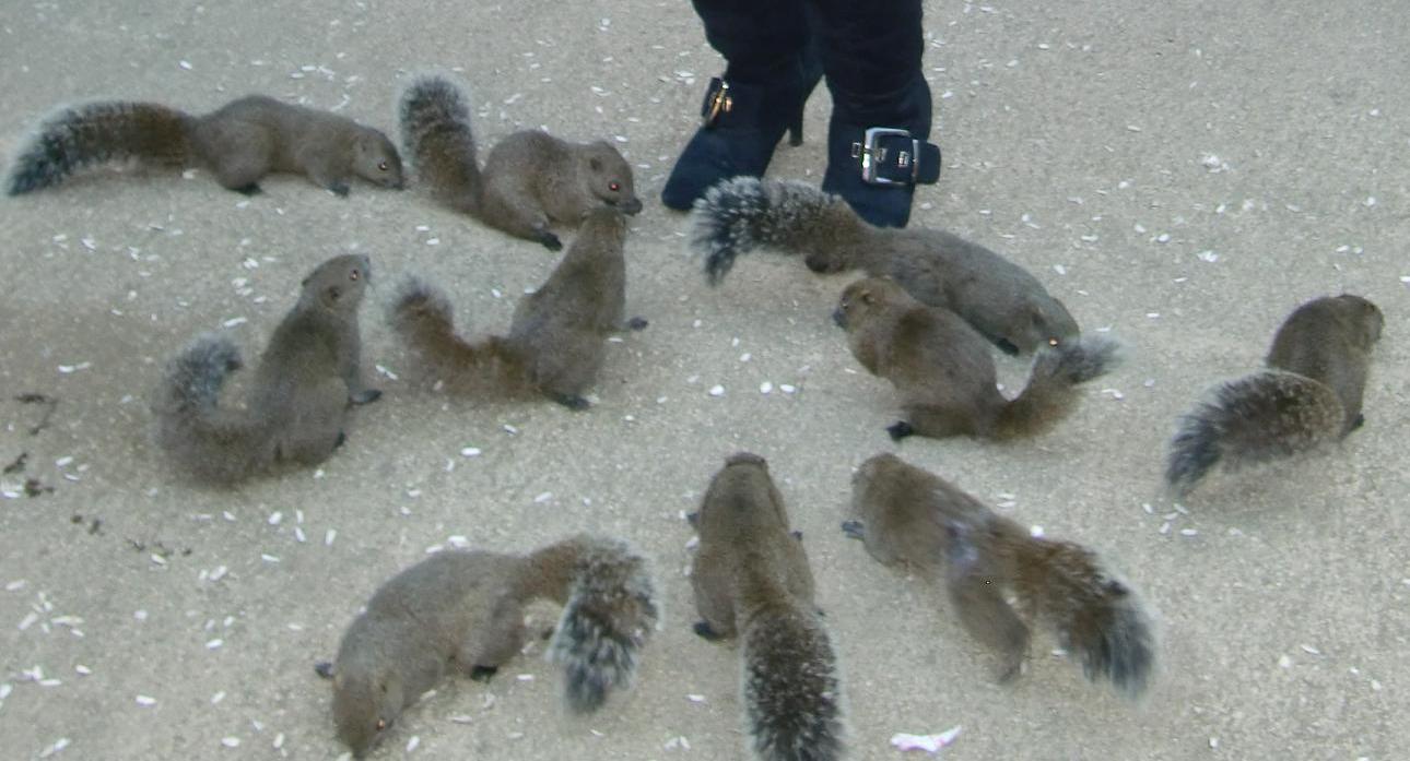 この広いお散歩コースにリスがうじゃうじゃいました!