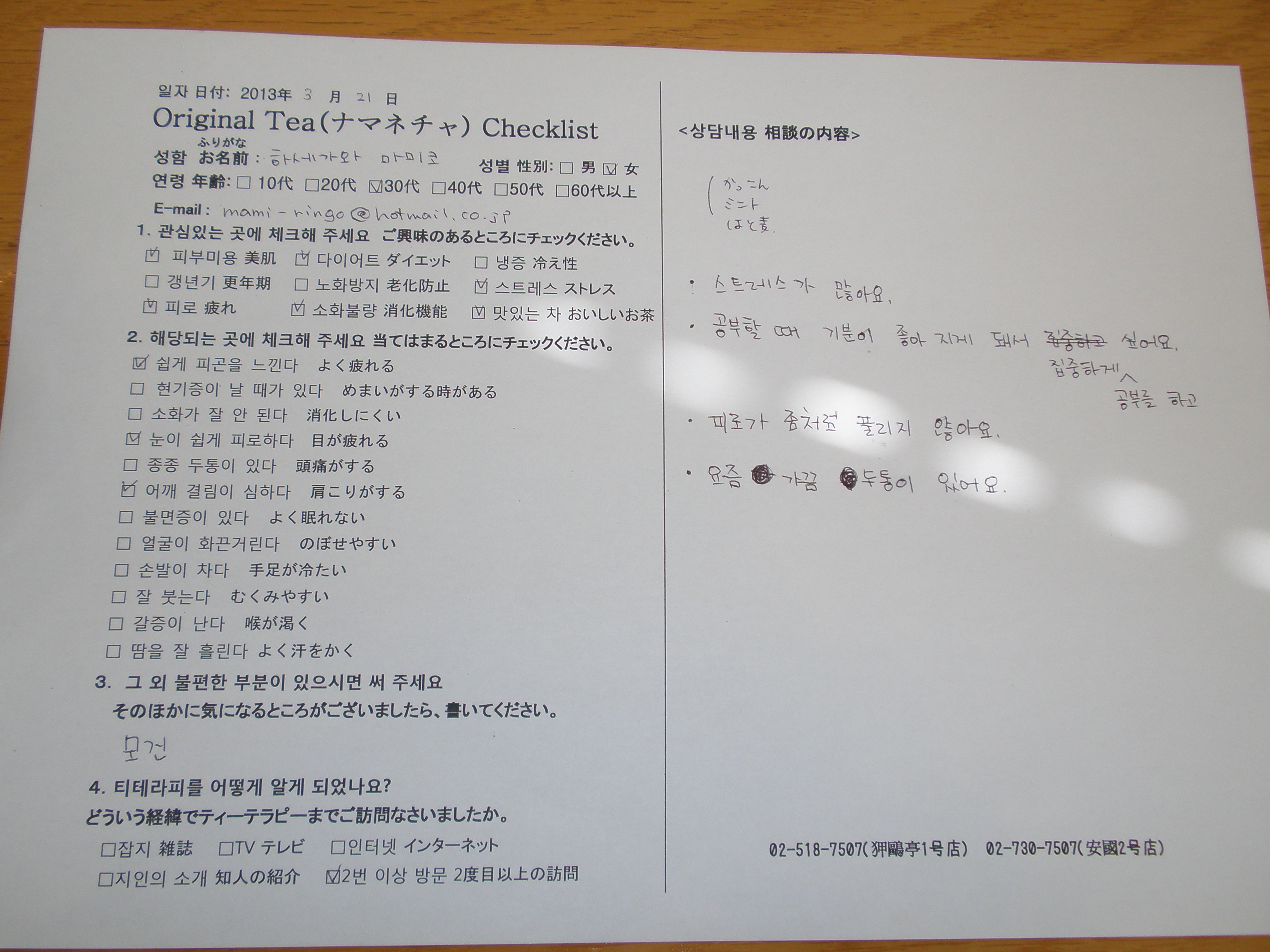 つまり、韓方医の先生とお話しして処方してもらった、その時の体調や希望にあった