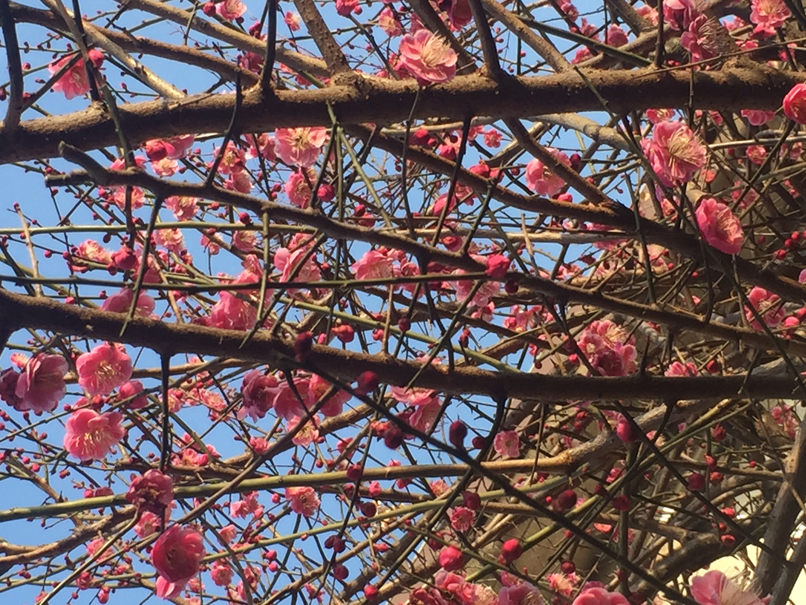 すると、園内でも有数の撮影スポットのようでカメラをかまえた人たちが1本の梅の前にわんさか